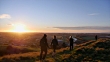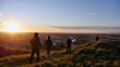 Young adults hiking above a city at sunset. - Slow Motion - 4K Bildbanksvideo